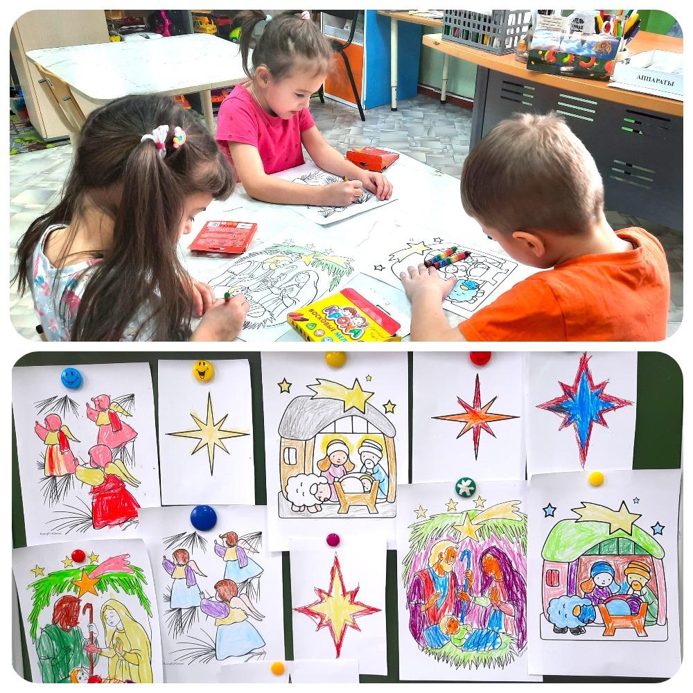 16 января 2026 г. в детском саду прошло занятие по теме "Рождество Христово". Дети познакомились с историей возникновения праздника, посмотрели мультфильм "Рождество Христово", раскрасили заранее подготовленные рисунки на рождественскую тематику.